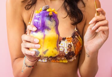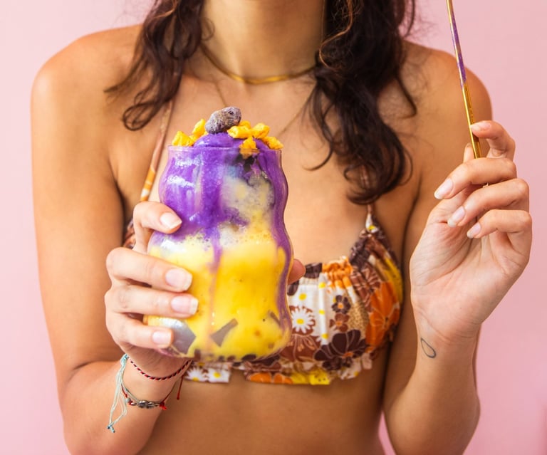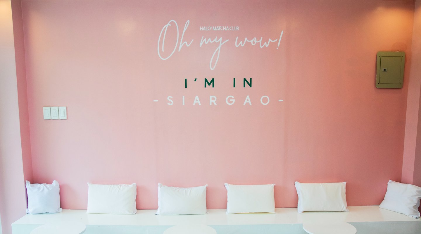 Enjoy delicious halo halos and tropical iced/hot matcha lattes at our unique pink hidden café on the surf island of Siargao in Catangnan, General Luna.